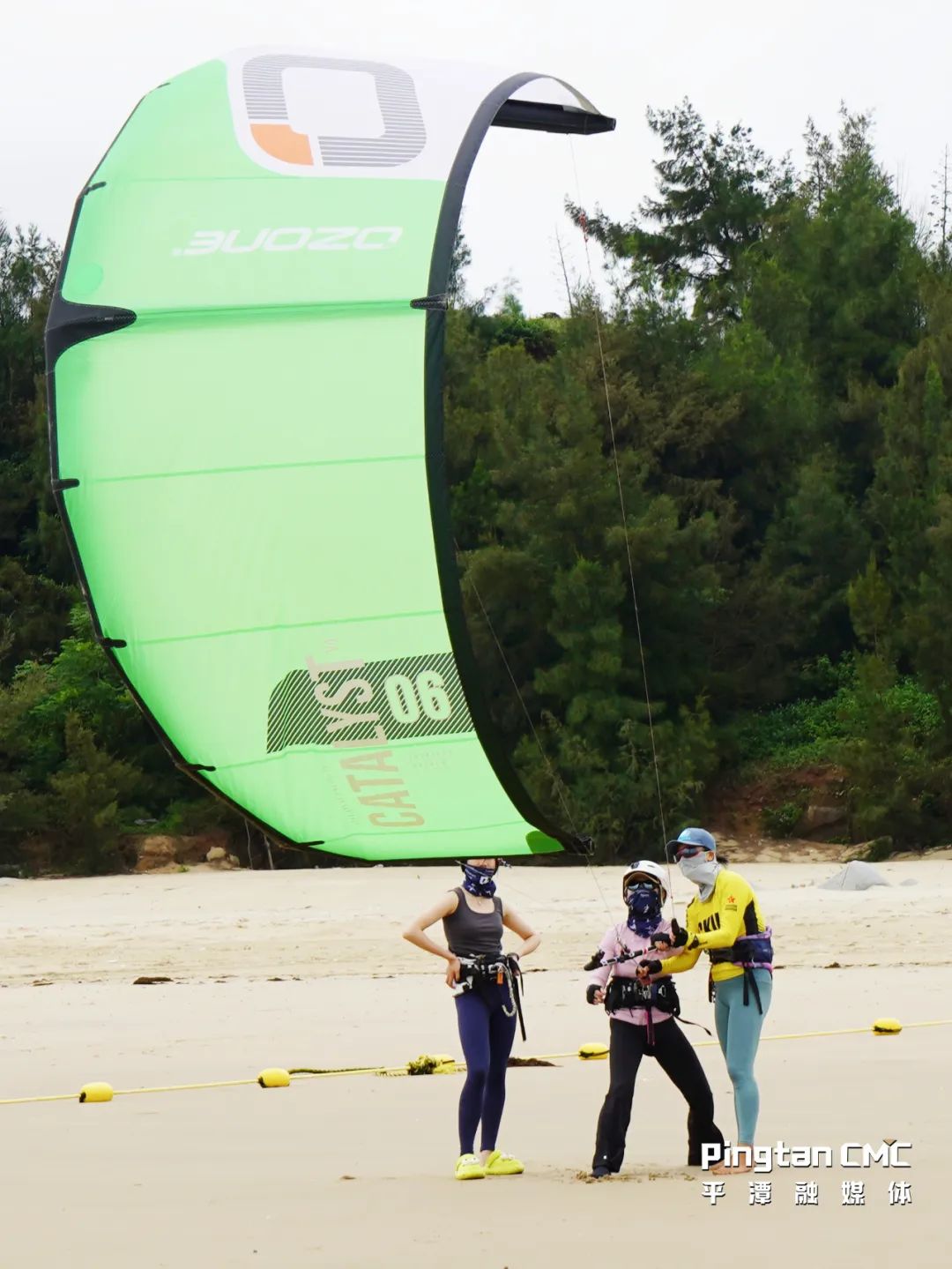 体验中,教练一对一向学员讲解理论知识,并传授风筝定点控制、控风筝走动等技巧;学员则将所学知识应用在实践中,在海面上根据风速变化推拉风筝把手,反复练习水上风筝控制技巧。