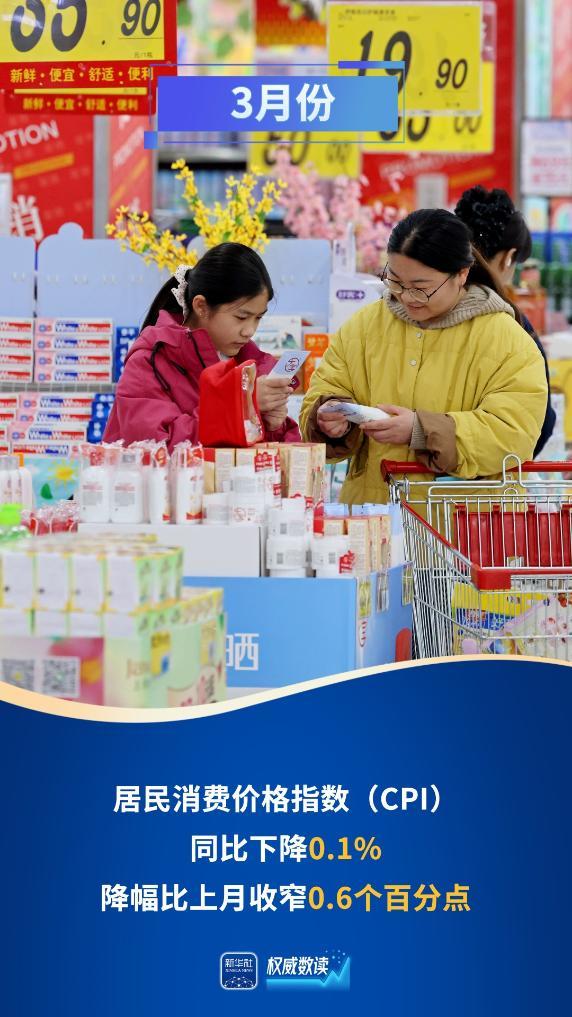 国家统计局10日发布数据显示,3月份,我国居民消费价格指数(CPI)同比下降0.1%,降幅比上月收窄0.6个百分点。从边际变化看,提振消费需求等政策效应进一步显现,核心CPI明显回升,同比上涨0.5%。