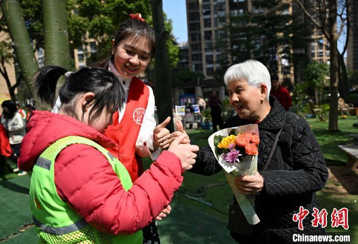 20日,由心智障碍青年制作的花束送到社区长者手中,传递着温暖与爱。 中新网记者 吕明 摄