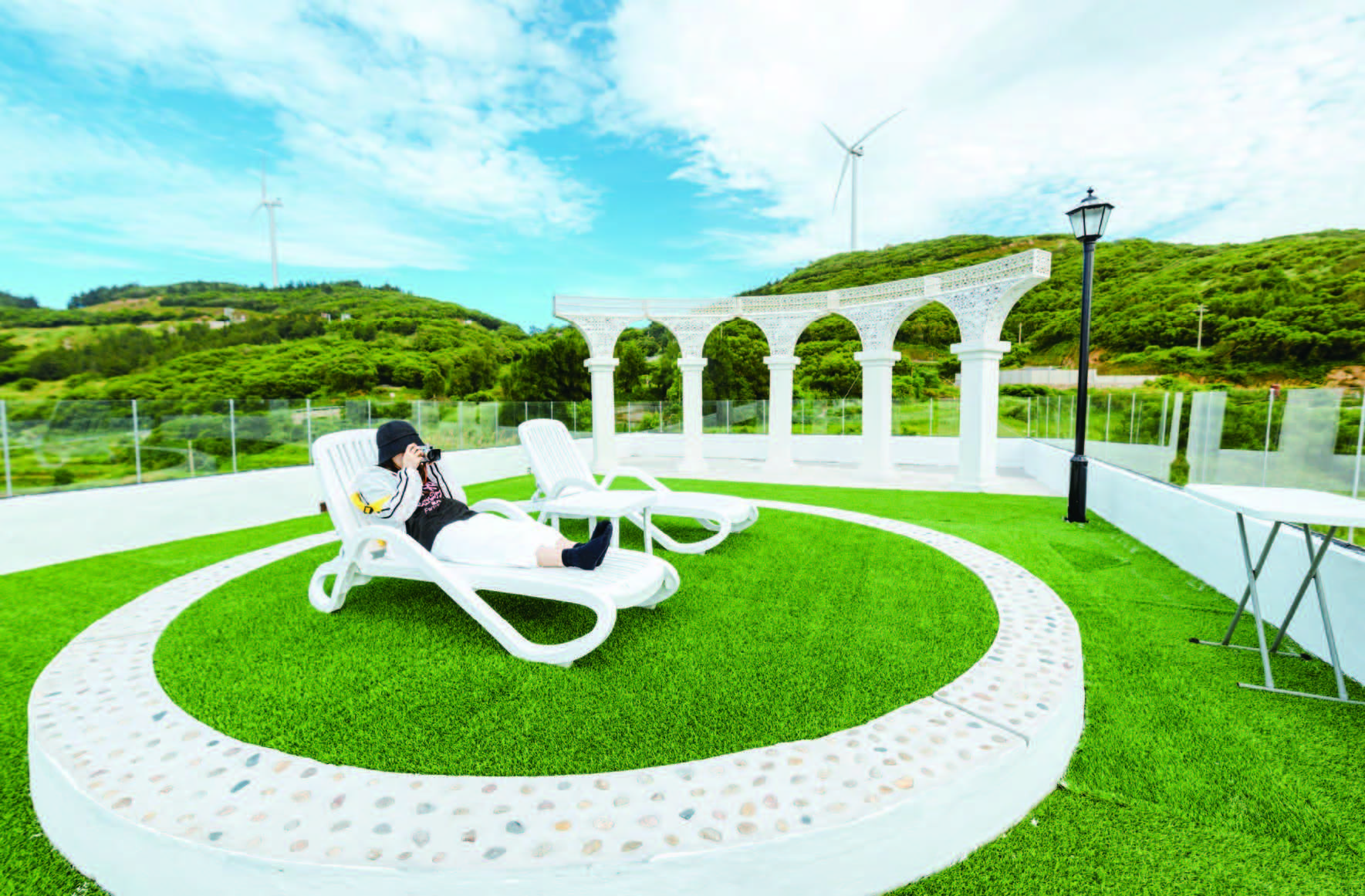 南盘仙境海边艺术民宿与南盘村村部比邻而居,却不显喧嚣,有闹中取静的美感。民宿是通栋建筑,共三层,每间房都别具特色,尤其是风景独绝的海景房。放眼望去,岚岛北部海隅,星星点点岛屿,尽收眼底。可以看风车摇摆,观南盘塔姿态,听涛声依旧,置身其中,宛若仙境,妙不可言。“慕名而来,到这之后,发现这里真的很美。”来自广东省的游客段先生探出窗外看着眼前的风光兴奋地说。
