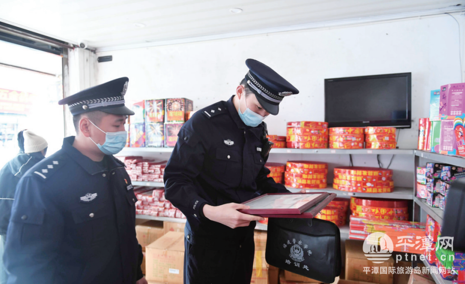2022-01-24 09:56:49 来源:平潭网平潭网1月24日讯(融媒体记者 陈梦菲/文 江信恒/摄)为进一步加强烟花爆竹安全管理工作,连日来,实验区公安局持续对辖区内烟花爆竹专卖店进行安全检查,进一步提高各烟花爆竹经营业主和辖区群众对爆炸物品的安全防范意识。