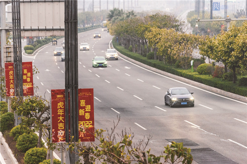 金井大道上,一辆辆归家的汽车呼啸而过,奔着团圆的方向行驶着。忙碌了一年的人们,归家也许是对过年最好的诠释与敬畏……
