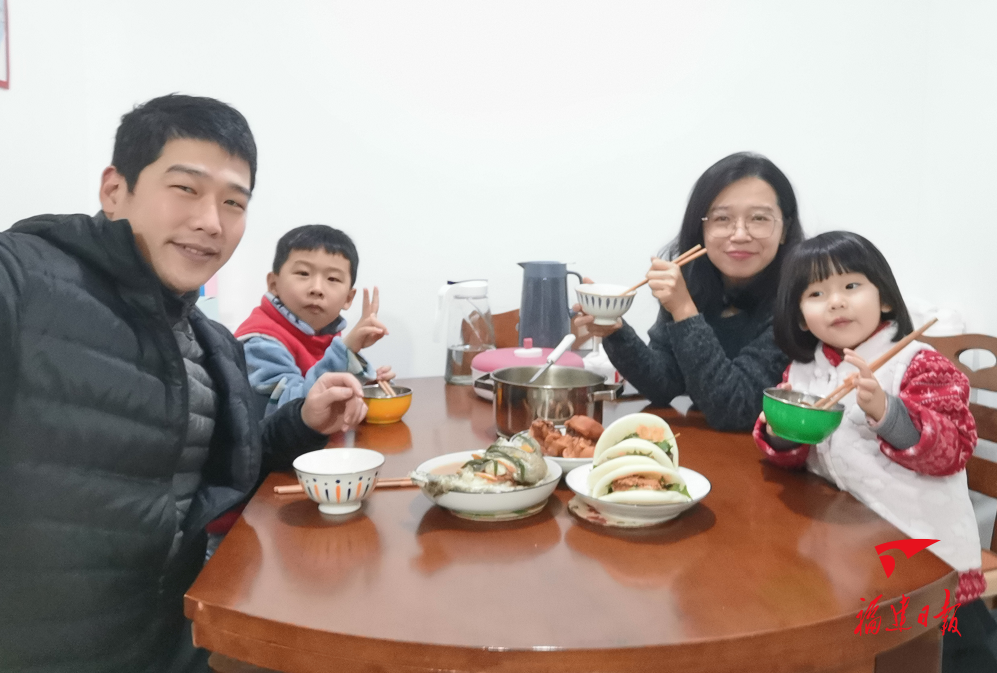 2022-02-01 11:19:52 来源:福建日报客户端·新福建福建日报客户端·新福建1月30日讯(记者 林霞 张哲昊)31日,除夕夜。台胞王魁峰的家中饭菜飘香,一家四口聚在饭桌前,简单的一顿火锅,吃得却是热热闹闹的年味。“新年快乐,我们在平潭过年!”隔着手机屏幕,王魁峰与台湾的亲戚朋友“云拜年”。