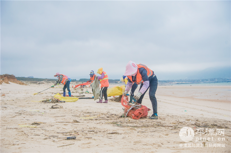 “轰隆隆、轰隆隆......”现场,拖拉机缓缓驶过后,大量埋在沙滩里的海漂垃圾被翻出来,10多名保洁员用钉耙和夹子把垃圾装到袋子,一阵忙碌过后,一袋袋打包好的垃圾被搬上车运走。“一团一团的海菜就是鲍鱼的饲料,还有木板、塑料袋、泡沫浮球,这些是海上养殖产生的垃圾,数量实在太多了,必须用机器来帮忙。”保洁员黄祖金说。