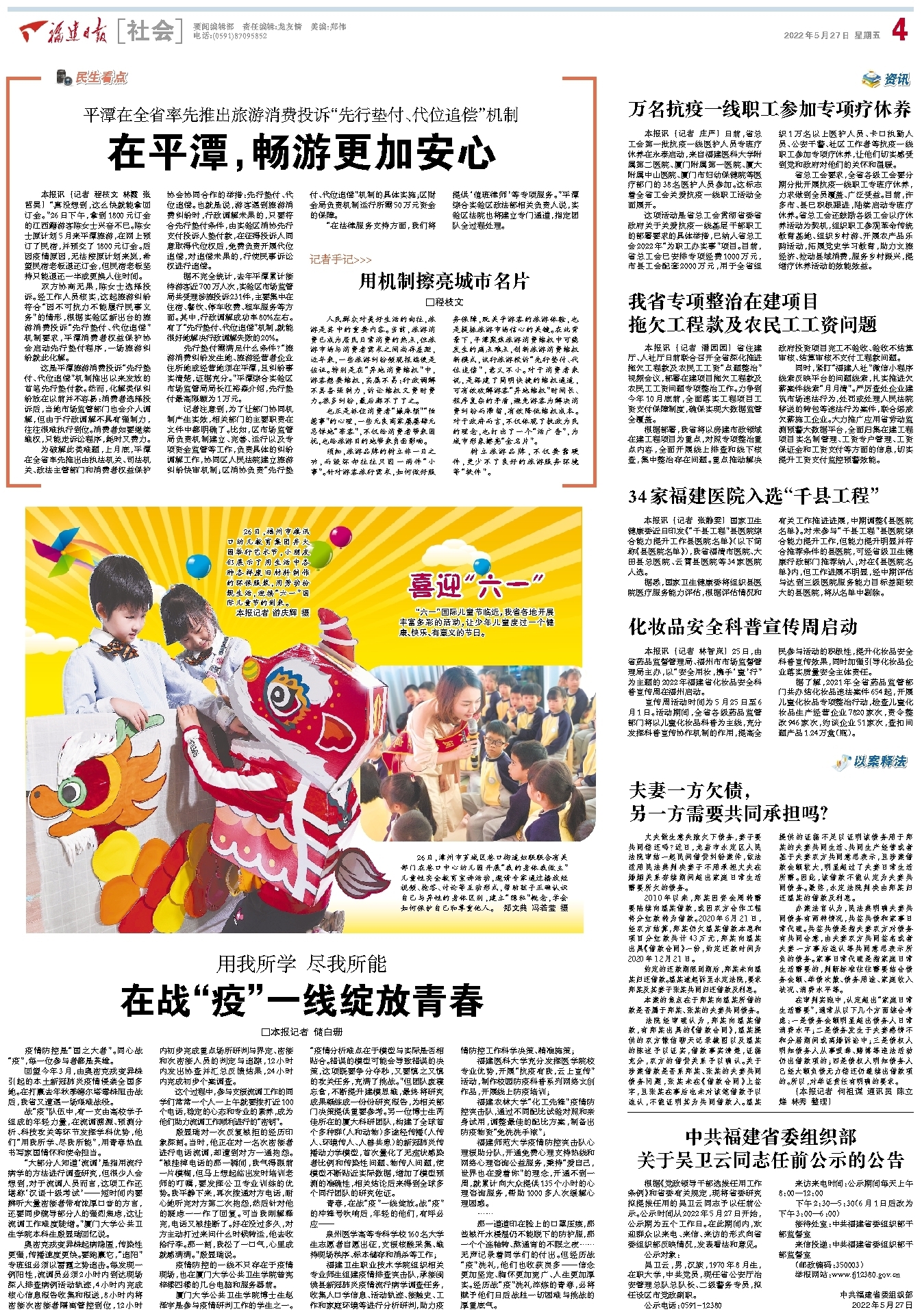 2022-05-27 09:41:50 来源:福建日报·新福建客户端 作者:程枝文 林霞 张哲昊平潭在全省率先推出旅游消费投诉“先行垫付、代位追偿”机制
