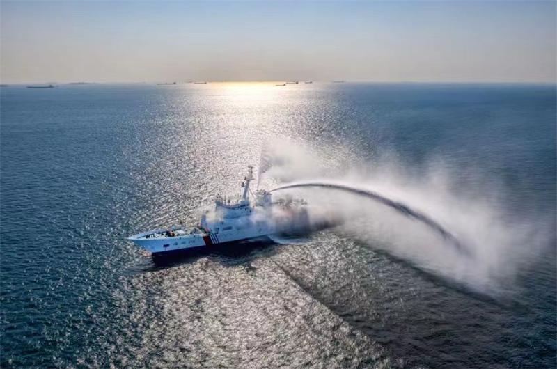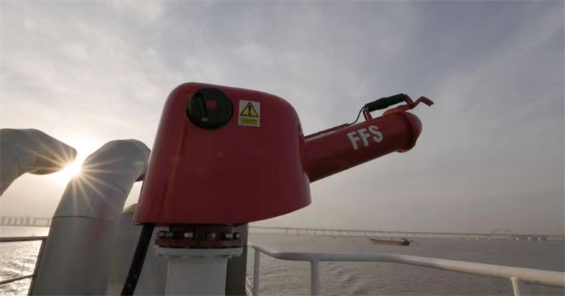 “它就是我们海巡领域的对外消防水炮装置,两台强力水炮通过主机直接驱动,压力极强,作用达到150米,如果加了泡沫,有效作用距离可以达到130米以上。”工作人员介绍,“海巡06”轮有着强大的消防能力,能够对水面上的船舶火灾事故提供非常智能消防救助。同时它还可以对一些暴力违法抗法的船艇实行强制的作用,可以制服或者对船艇进行驱离,大大提升海事执法的行政强制力和威慑力,以此维护国家海洋权益。