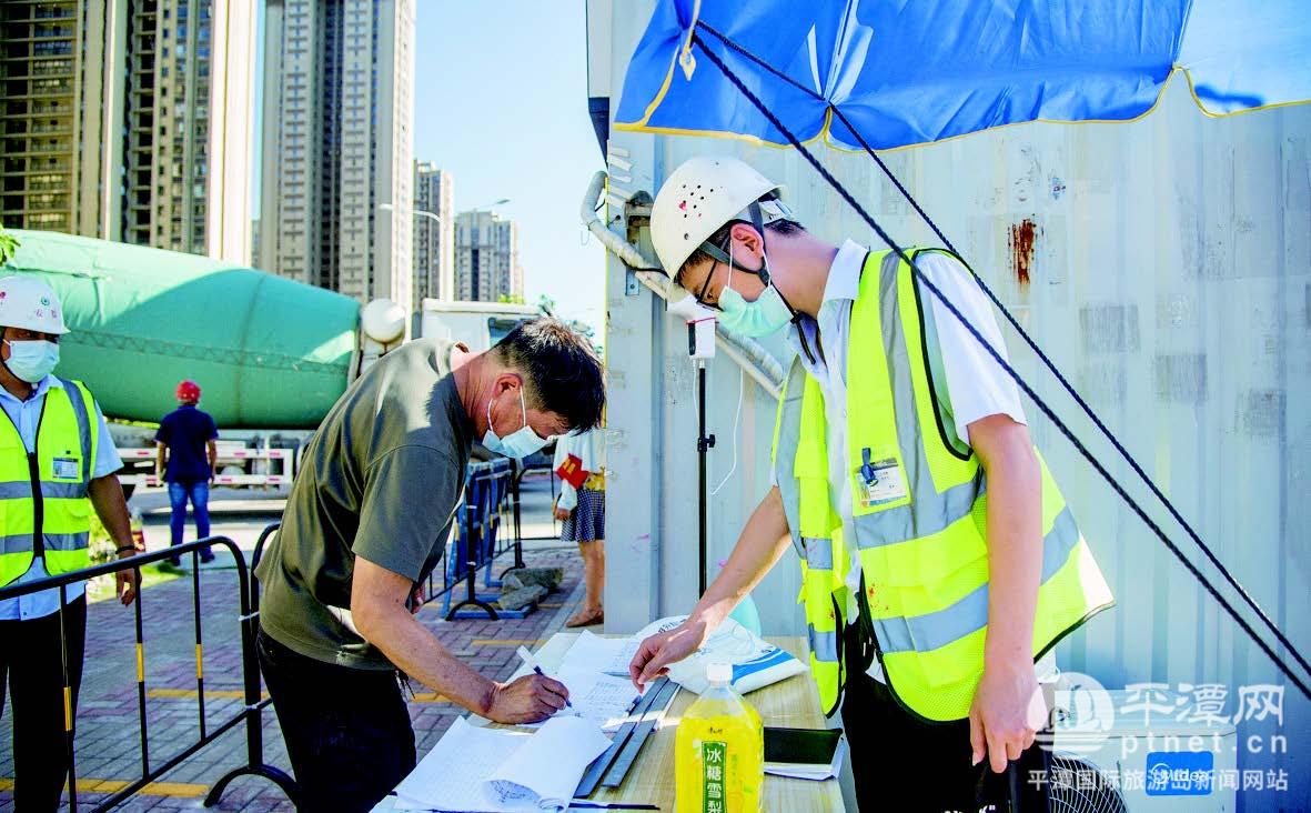 2022-07-22 10:30:53 来源:平潭网平潭吾悦广场施工人员入场需进行防疫登记。融媒体记者 林君斌 摄