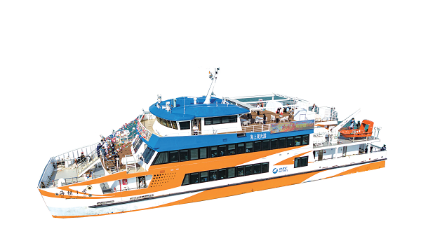 这里是两岸直航快捷通道,游客在此可近距离与世界上航速最快、直航台湾本岛的全铝合金双体穿浪型高速客滚船“海峡号”合影。