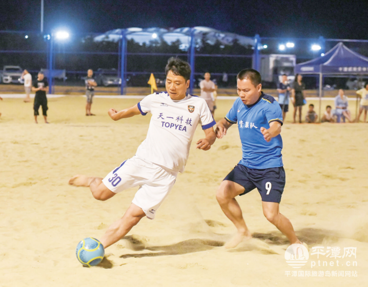 2022-08-06 09:27:12 来源:平潭网平潭网8月6日讯(融媒体记者 林彤欣/文 江信恒/摄)5日晚,2022年平潭综合实验区全民健身运动会“大岚淘沙 足下生辉”第二届沙滩足球锦标赛在平潭国际旅游岛沙滩运动基地开赛。本届赛事共吸引平潭麒麟队、平潭平安队、平潭国资联队、福建天一队、福州皇马队、三明刺客队、苏平片区队等7支队伍,共126名运动员参赛。