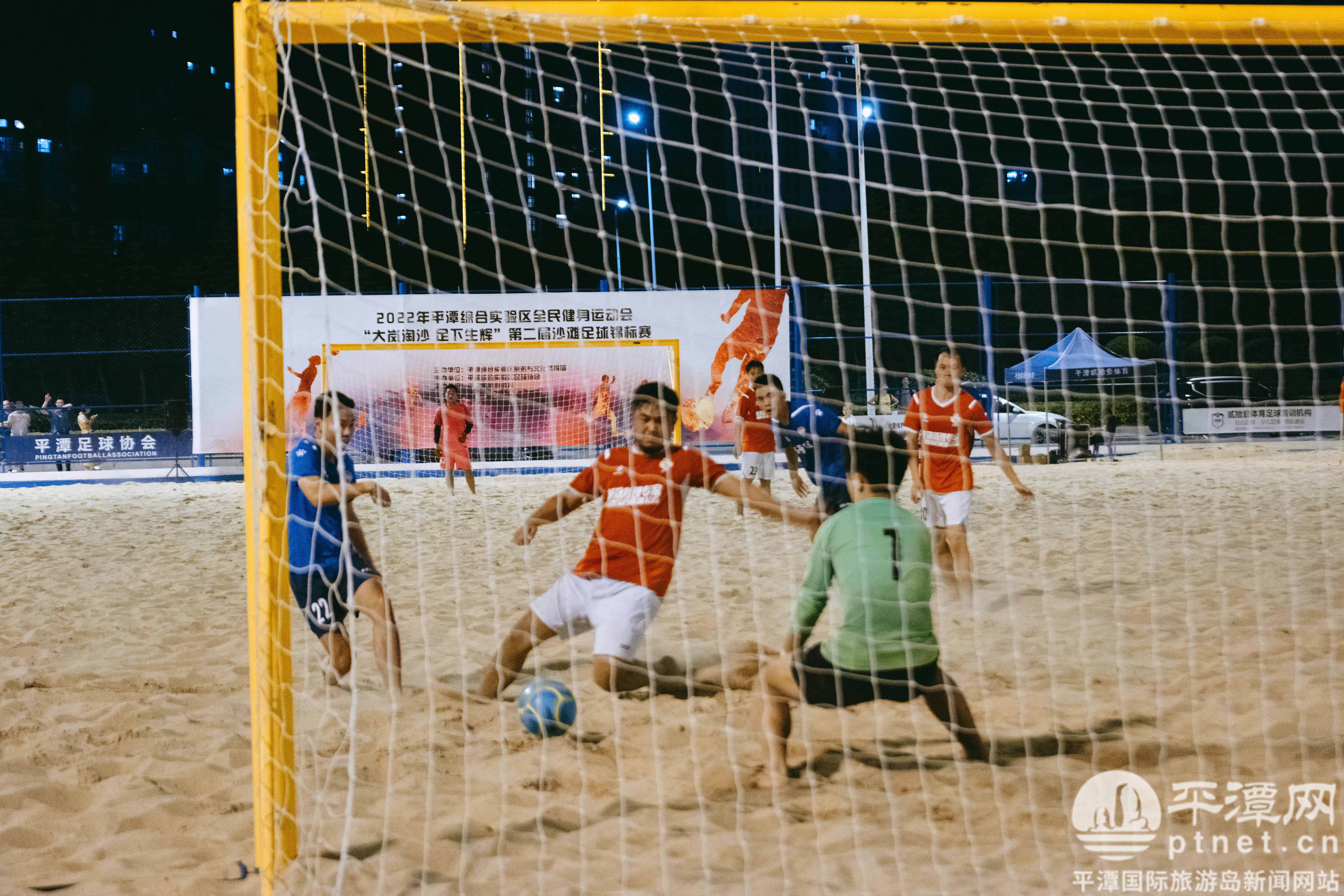 7日晚,褪去了白天的热浪,夜幕下,赛场上的沙子还有些烫脚,但这也丝毫阻挡不住运动员们的热情,他们挥洒着汗水,激战正酣,充分享受沙滩足球带来的运动乐趣……在龙王头洁白的海滩上,2022年实验区全民健身运动会“大岚淘沙足下生辉”第二届沙滩足球锦标赛激情上演,当晚是福州皇马队与苏平片区队开展冠亚军的争夺。