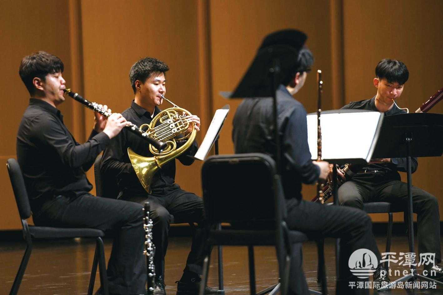 长笛明亮华丽,双簧管甜美清澈,单簧管抒情醇厚,巴松温和庄严,圆号宽广柔美,它们相互交织相融,如泉水源源涌出,在平潭国际演艺中心回荡着。“五个声部音色完美交织融合,在现场聆听感受到一种别样的韵味。”听众林筱筱说。