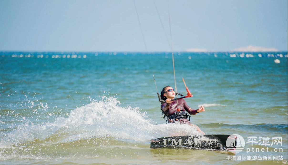 同样,在2022年平潭综合实验区全民健身运动会·平潭海峡两岸风筝冲浪邀请赛上,来自全国各地的选手在海天之间,时而劈波逐浪,时而腾空而起,为观众奉献一场速度与激情的视觉盛宴。其中,陈逸嫚凭借稳定的发挥和出色的空中技巧,获得女子空中花式项目第一名。“能把自己平时练习的动作完全展示给大家,我非常兴奋。在平潭,风筝冲浪爱好者可以展现出各自的水平,大放异彩,是一次很好的体验,希望今后可以走上国际。”陈逸嫚说。