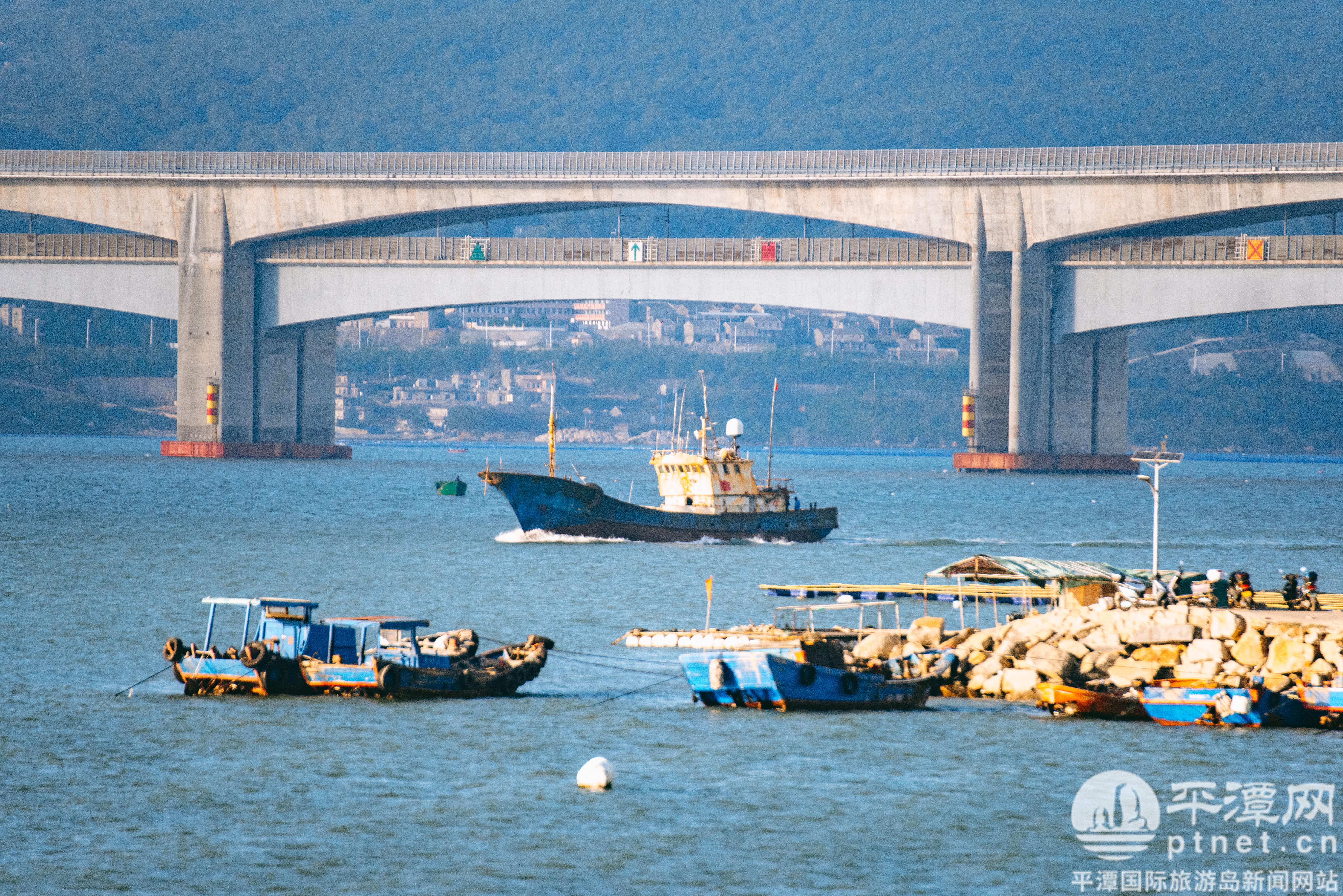 沿着海岸线漫步,远处海面上一座美丽而神秘的小岛——北香炉屿,跳入眼帘。北香炉屿呈南北走向,长300米,宽100米至270米,因形似香炉而得名。它矗立在蔚蓝色的大海中,几艘现代化的渔船在岛屿周边穿梭,如巨龙般的平潭海峡公铁大桥从岛边穿过,更增添其神秘感。