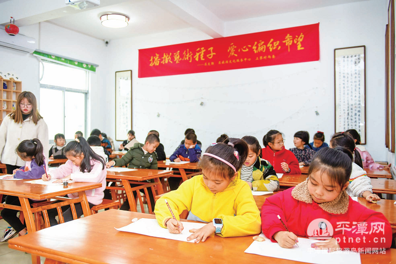 2019年初,林海平留意到村里的孩子课余生活单调,由此萌发了开办乡村公益学堂的想法。于是,林海平挨家挨户摸底村里的留守儿童,协调教室,自费修缮,添置了书桌、空调及笔墨纸砚等设施。实验区文联、旅游文化服务中心支援师资与“书资”,自此,学堂进入常态化运行,服务时间为上学期间周末和寒暑假。