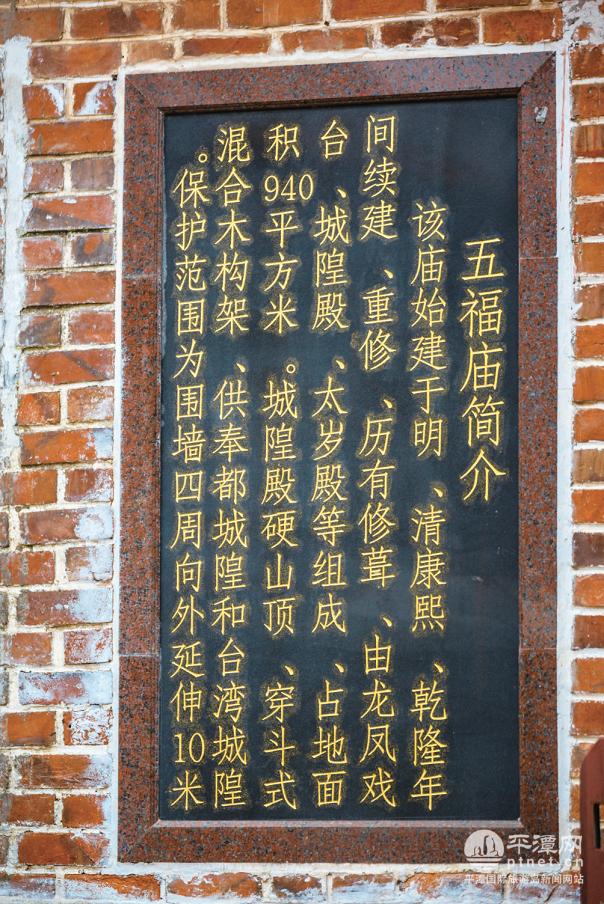 五福庙内门楣处的石匾书写着“平潭古迹”的字样。