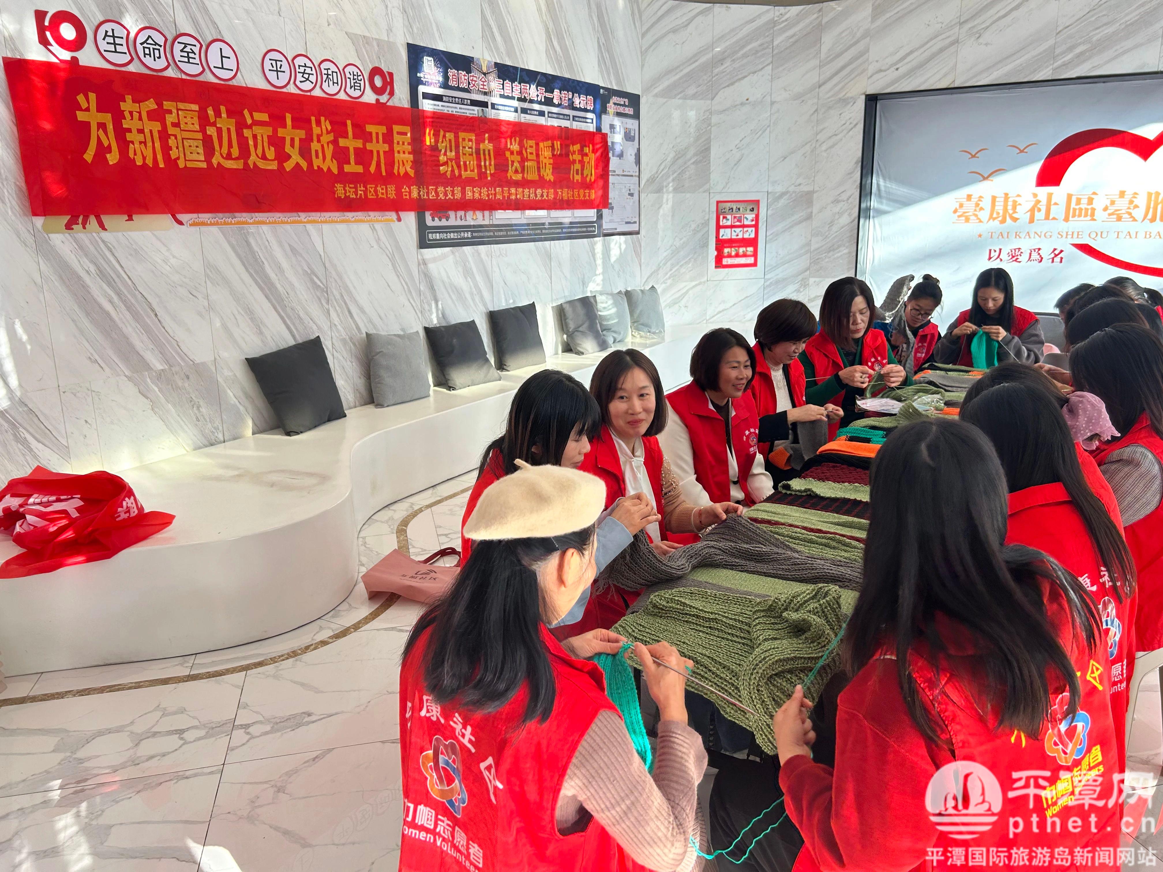 近日,平潭综合实验区妇联组织巾帼志愿者为新疆边远女战士开展“织围巾 送温暖”活动,让她们感受“娘家人”的温暖。