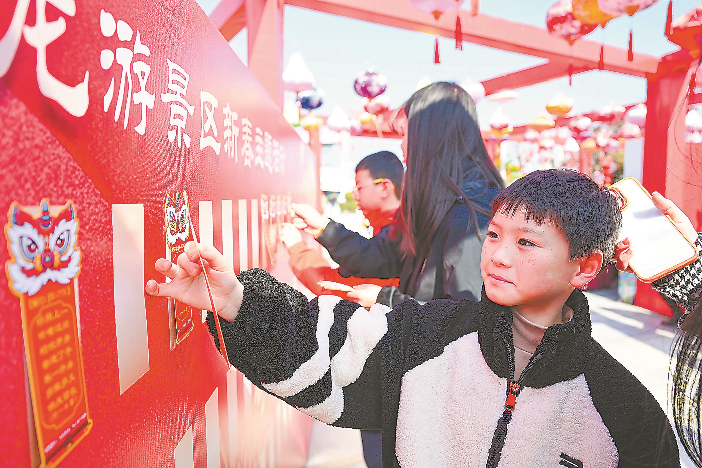 在平潭龙王头海洋公园,“福”龙游景区活动人气火热,游客正驻足猜灯谜。