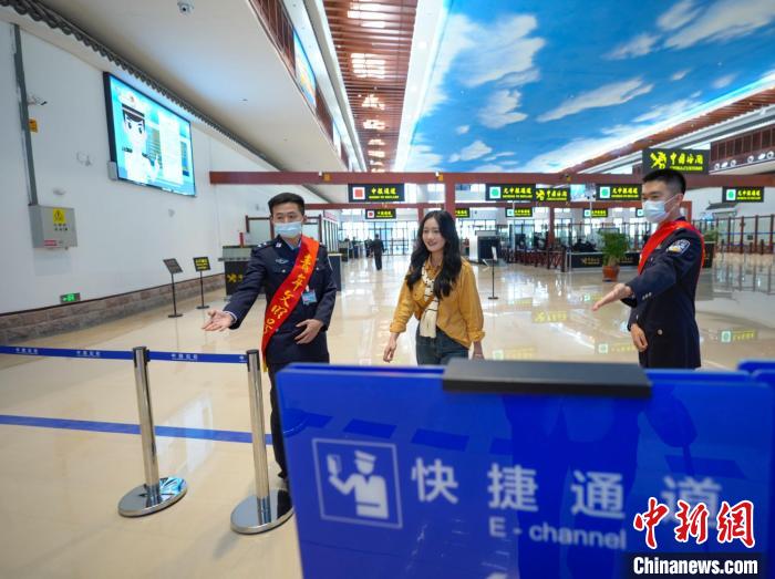 平潭边检站移民管理警察引导旅客使用快捷通道通关。谢贵明摄