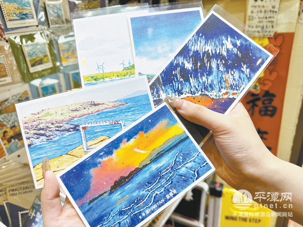 店员李燕告诉记者,店内有多款含有蓝眼泪元素的文创产品,其中冰箱贴、明信片等广受游客喜爱。