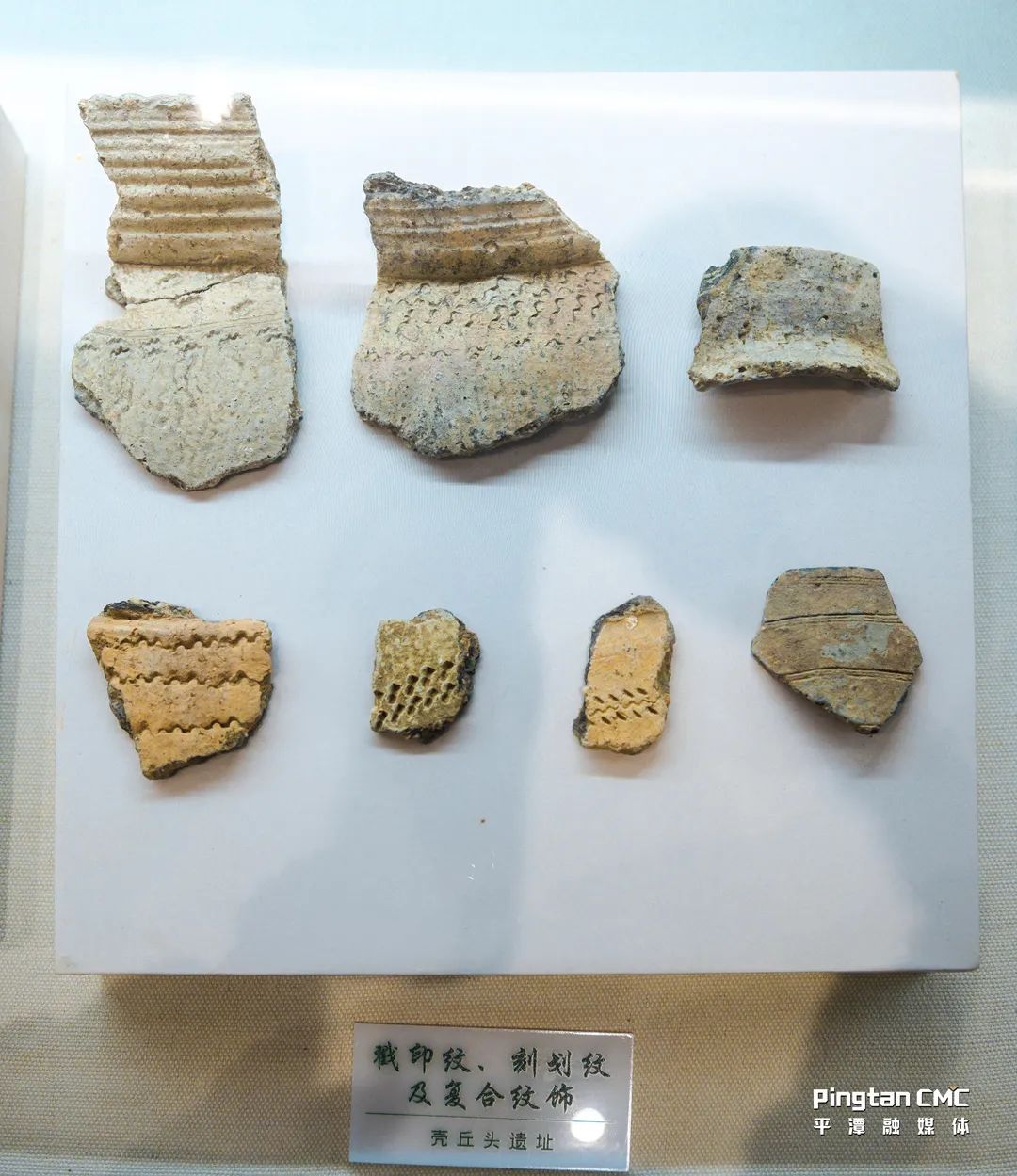 平潭壳丘头考古遗址公园展馆内展示的陶片