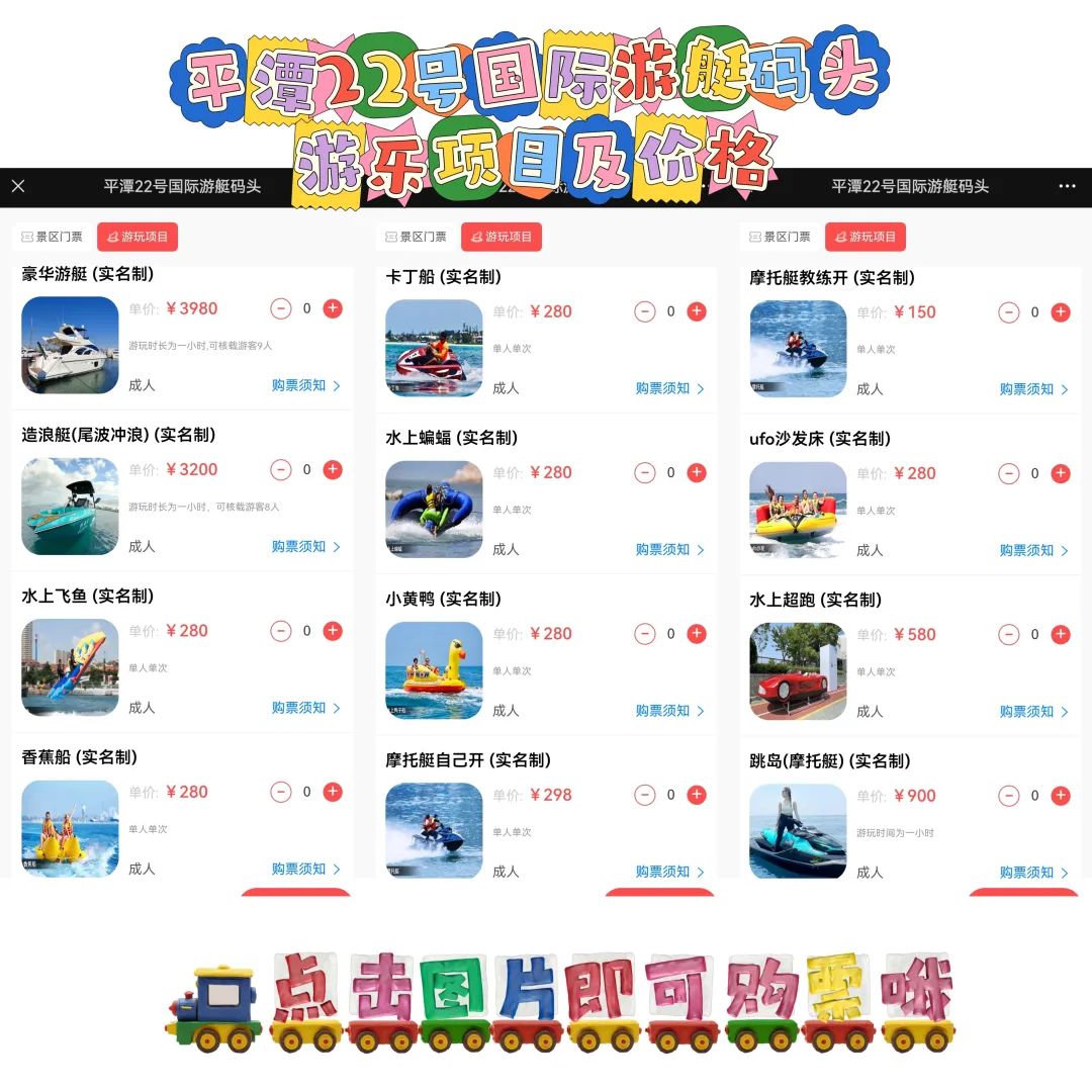 水上超跑、香蕉船、小黄鸭等
