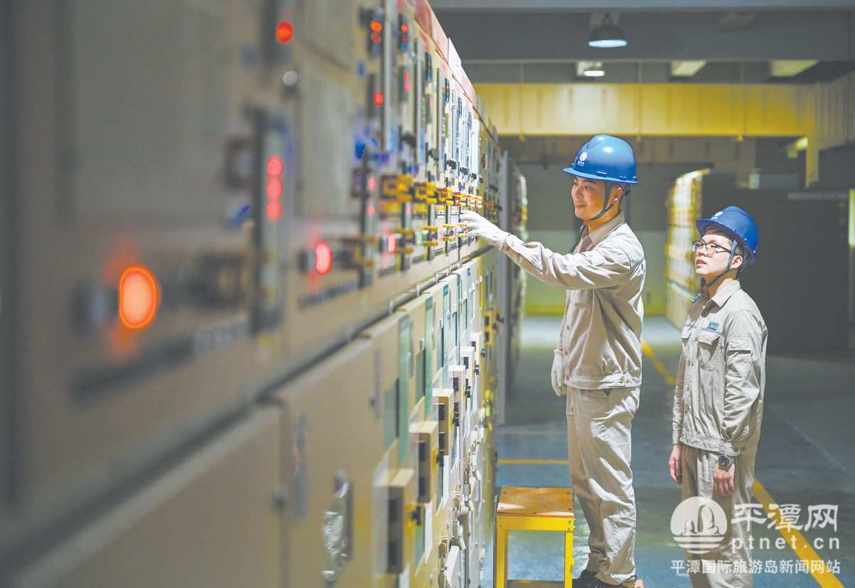 2024-07-05 09:58:29 来源:平潭网 作者:廖慧娟/文 江信恒/摄林剑清(左)和同事一起检查设备。