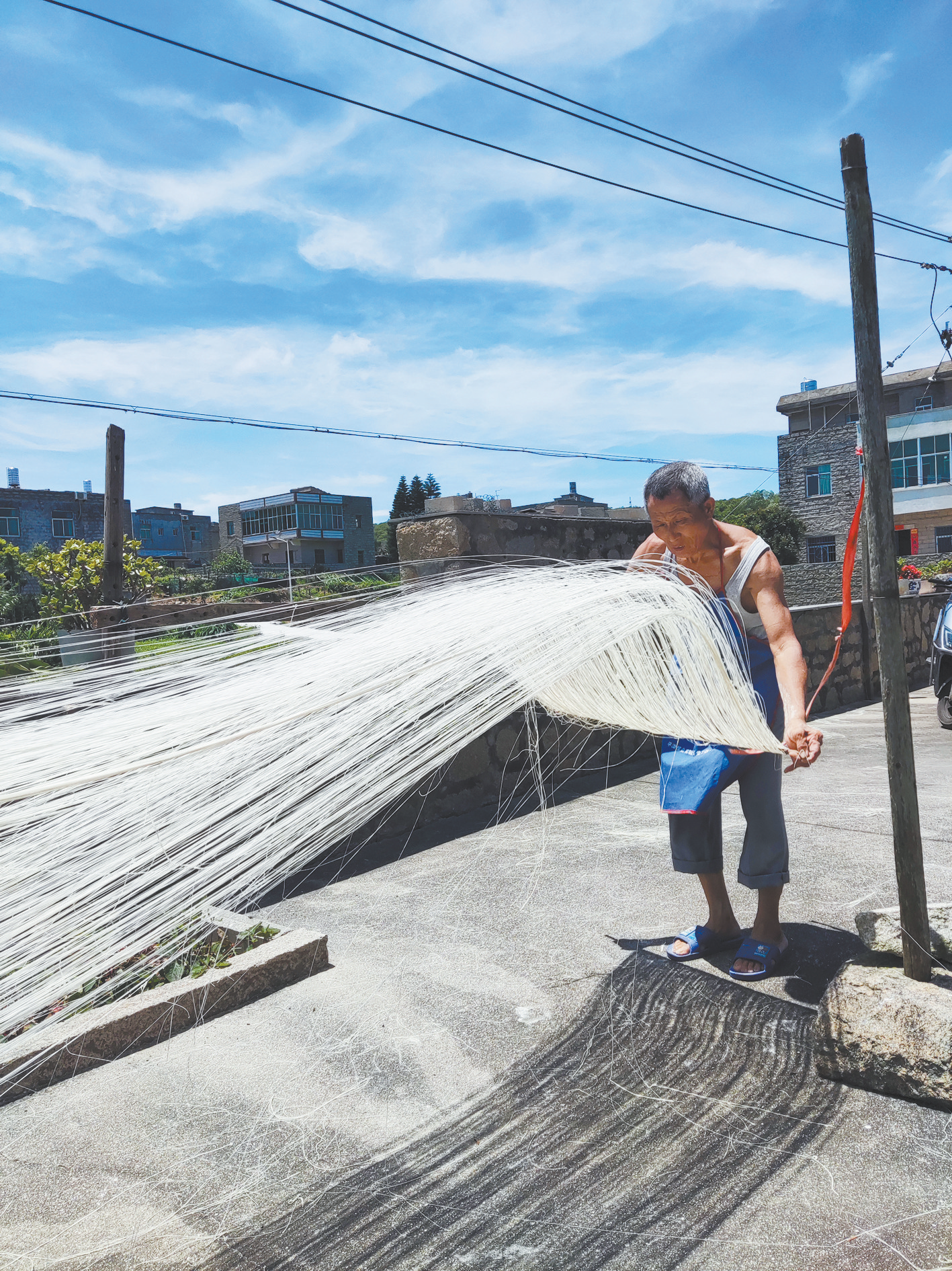 2024-07-17 09:39:38 来源:平潭网 作者:陈而坚 文/摄生日吃线面期望长寿、结婚吃线面代表喜庆、过年吃线面寓意平安……在平潭人的生活里,大小喜事都能见到线面的影子。随着时代变迁,费时费力的线面手工制作方式逐渐被机器取代,而在海坛片区中南村,线面手艺人周而智坚守着这份手艺已经四十余载。