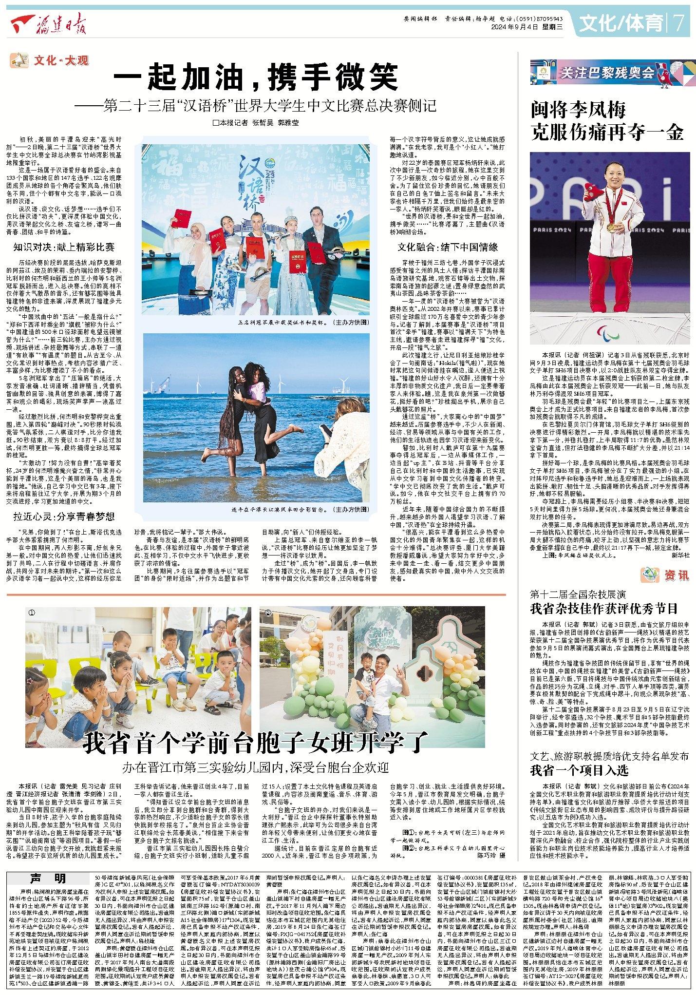 2024-09-04 17:44:27 来源:福建日报 作者:张哲昊 郭雅莹原标题:一起加油,携手微笑——第二十三届“汉语桥”世界大学生中文比赛总决赛侧记