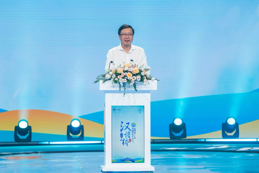 陈杰在致辞中指出,中文作为世界上最古老的语言之一,承载着中华民族数千年的历史文化,是中华民族贡献给人类的璀璨瑰宝。“汉语桥”比赛举办23年来,累计吸引了160多个国家、170多万名青少年参与,已成为全球中文学习者展现学习成果的荣誉榜,展示精湛才艺的大舞台,享受快乐友谊的嘉年华。“汉语桥”致力于搭建“语言之桥”,激励和帮助更多的海外朋友学习中文,感受中文之美,帮助他们在学习中文的道路上不断成长进步。“汉语桥”致力于搭建“文明之桥”,帮助海外朋友了解中华文明、体验中国文化,同时也为各位展现自己国家的文化提供舞台,促进相互间文化交流和文明互鉴。“汉语桥”致力于搭建“友谊之桥”,帮助来自世界各地的青年学子们相识相交相知,加强交流,结交朋友,加深友谊,增进相互理解。他勉励大家继续学好中文,有机会来中国留学,做增进中外友谊的友好使者。