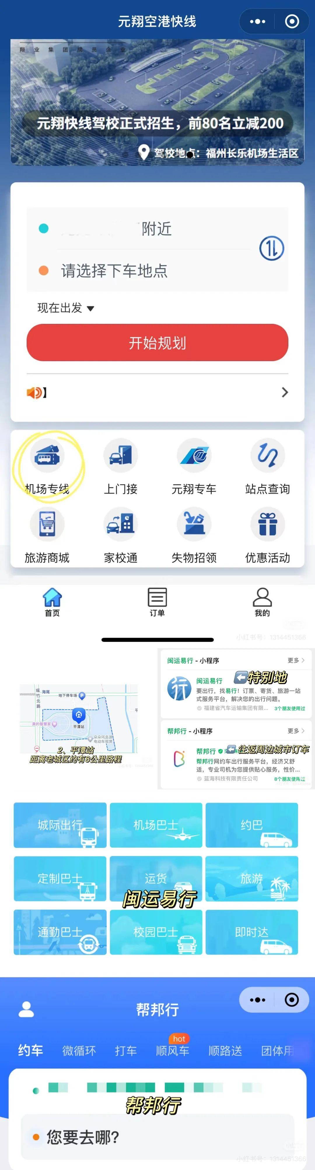 城际网约车:往返福州、福清等周边城市您可选择【闽运易行】或【帮邦行】小程序订车。