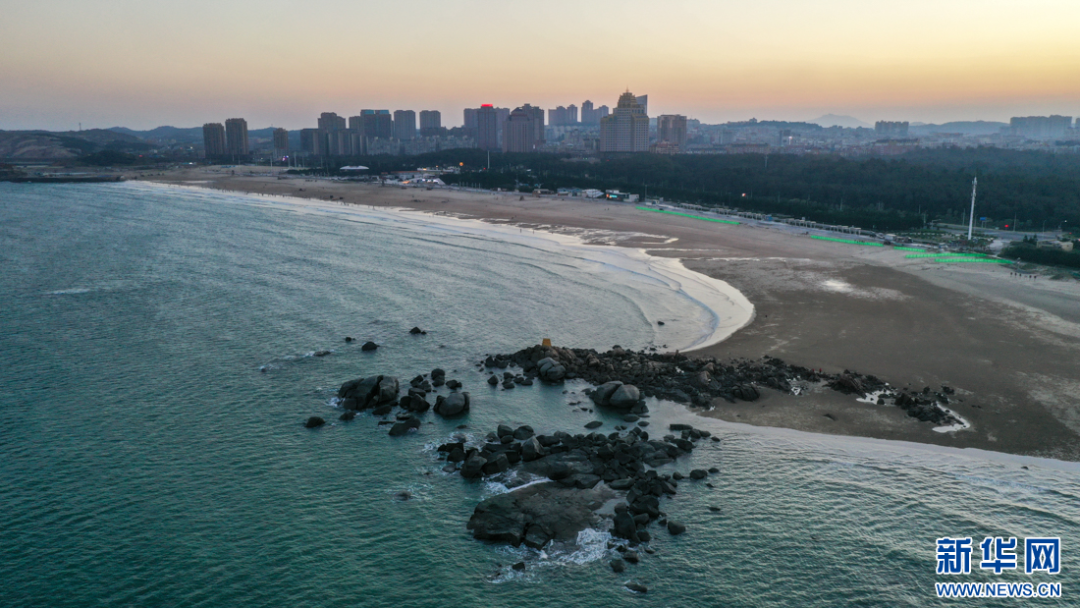 这是日落之后的龙王头海洋公园海滩(10月14日摄,无人机照片)。新华网 肖和勇 摄