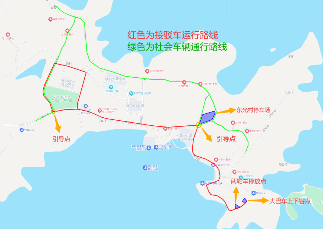 已预订服务游客车辆:已预订68小镇内民宿、餐饮等服务的游客,建议您由澳前北路开往澳前西路至引导点(如图),向现场工作人员出示相关订单凭证,经人工确认后通行。