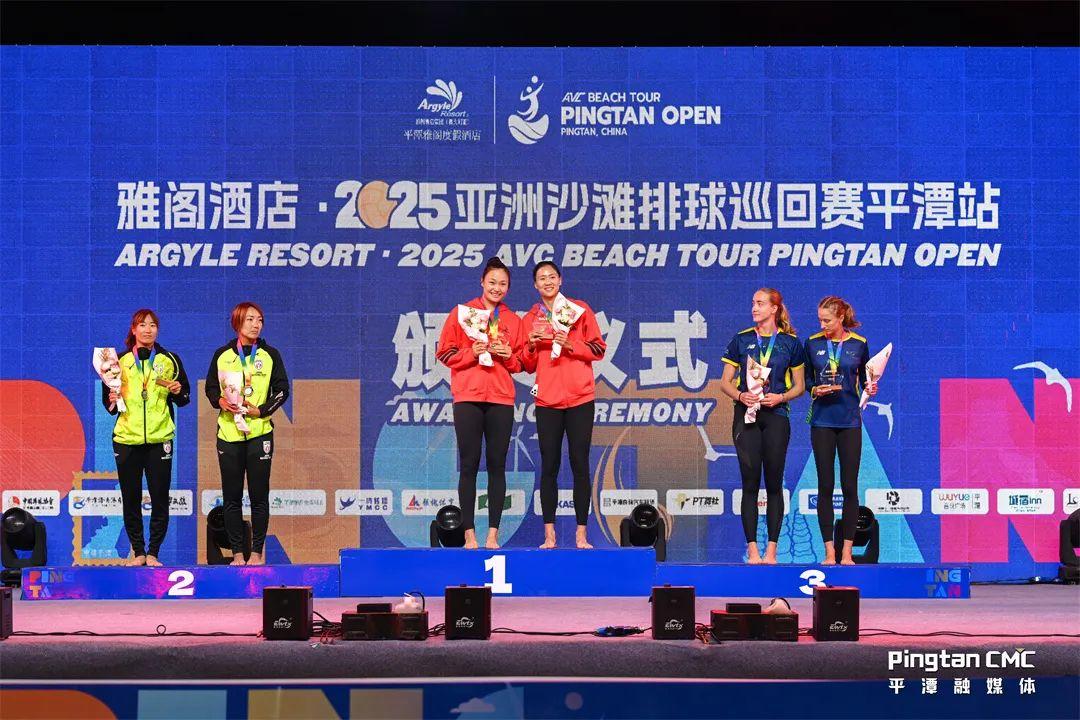 平潭网5月11日讯(融媒体记者 林彤欣/文 江信恒/摄 活动方供图)经过4天激烈角逐,5月11日晚,雅阁酒店·2025亚洲沙滩排球巡回赛(平潭站)圆满收官。在女子组决赛中,中国队发挥出色,以2:0的比分战胜日本队,夺得金牌;日本队和澳大利亚队分别获得银牌和铜牌。男子组方面,卡塔尔队实力强劲,摘得金牌,澳大利亚队则包揽银牌和铜牌。