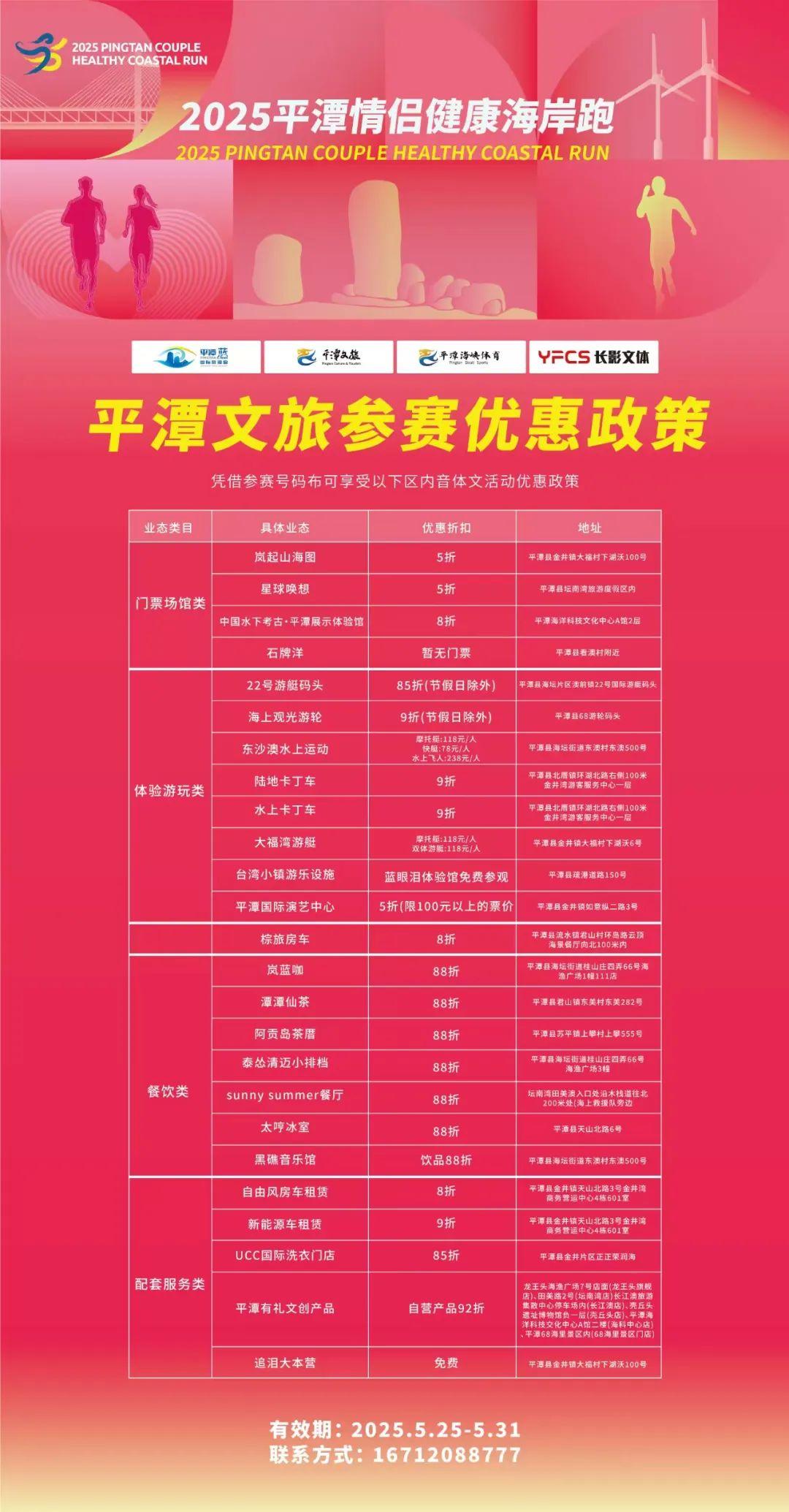从龙王头广场到台湾小镇,精心规划的赛事线路串联起平潭最美的海滨风光,让你们在晨光中携手同行,用脚步丈量爱情的温度。