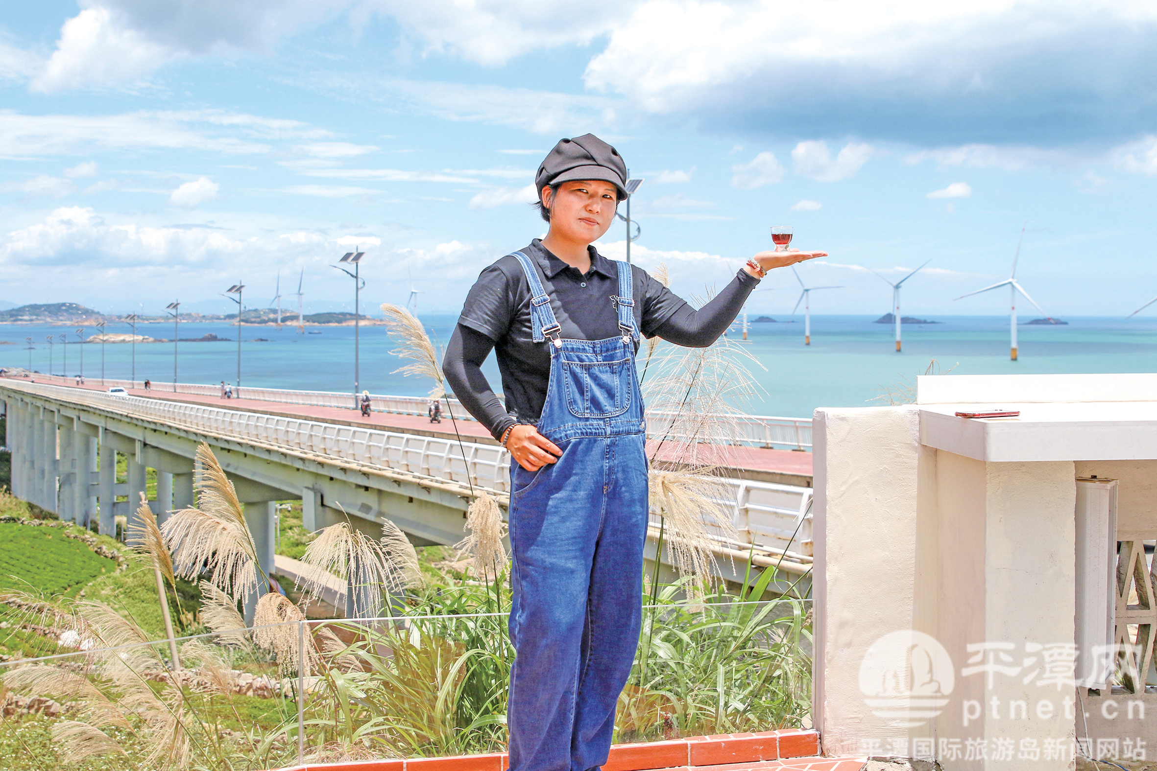 刘舒婷手捧咖啡与平潭美景融为一体。