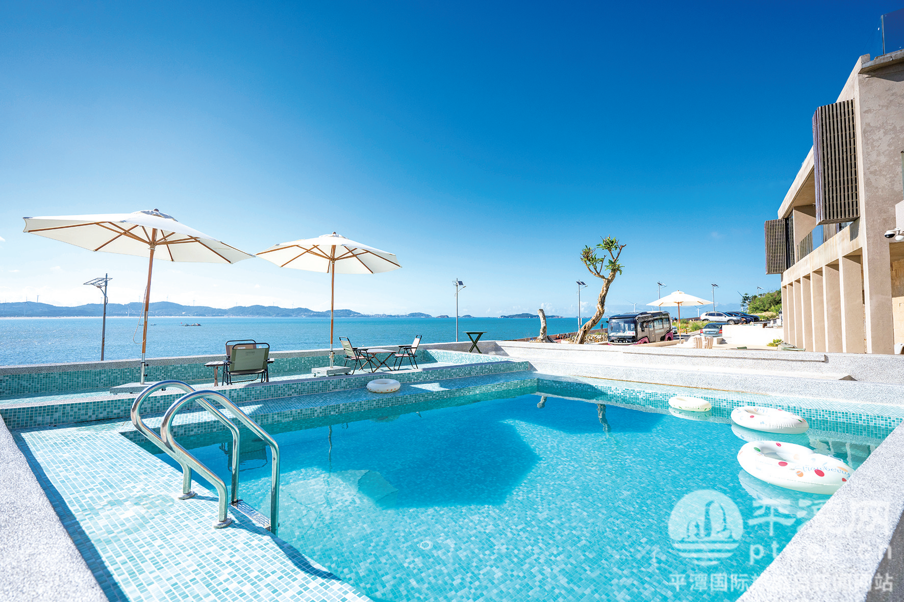走进客房,米白、浅灰、大地棕等色调巧妙融合。推开通往露台的小门,眼前是一望无余的大海,身后是云雾缭绕的君山。游客在民宿无边泳池嬉戏玩水,悠闲地躺在沙滩椅上休憩,犹如置身于世外桃源,让人卸下了平日生活工作中的所有压力。“这里太美了,满足了我对大海的一切幻想。”第一次来平潭的江西游客胡艺涵说。