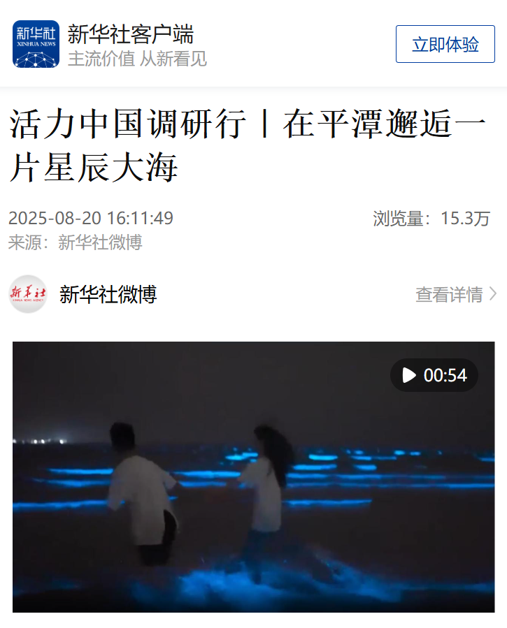 在福建平潭海域,当夜间浪潮涌动时,夜光藻与海萤受扰动发出璀璨蓝光,海岸线宛如星河坠海。这一现象多集中于4月至8月,坛南湾、长江澳等地为最佳观测点,如梦似幻的生态景观吸引大量游客前往打卡。