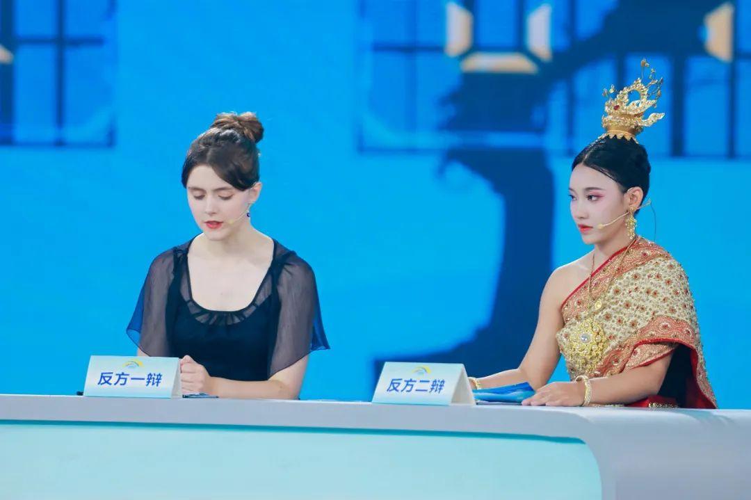 第四轮“新秀争鸣 字字珠玑”,选手就“文明交融性与独特性”辩论,德国选手柯夏安凭清晰逻辑展现思辨力。