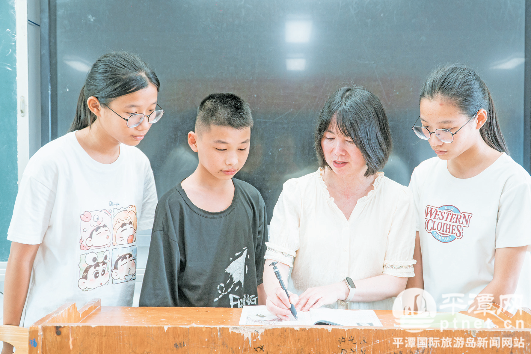 平潭第二中学教师吴云梅(右二)讲解习题。