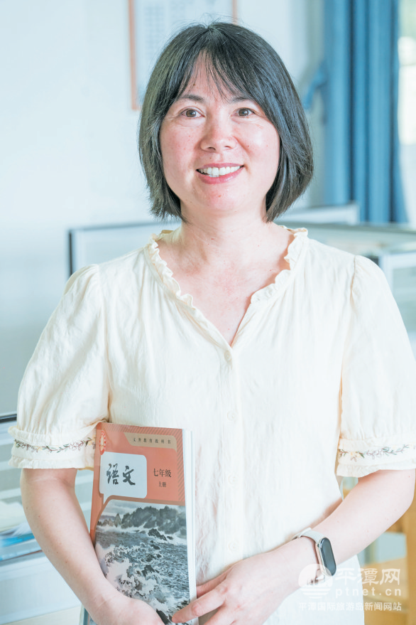 9月2日,平潭第二中学七年(1)班教室,阳光透过窗户,落在孩子们专注的眼睛里。讲台前,语文教师吴云梅手持新课本,和孩子们一同在美妙的语文世界中徜徉。