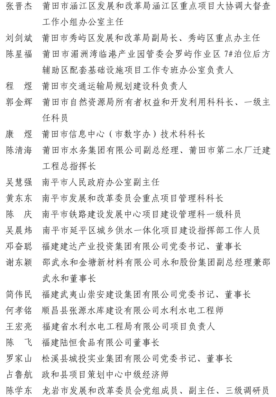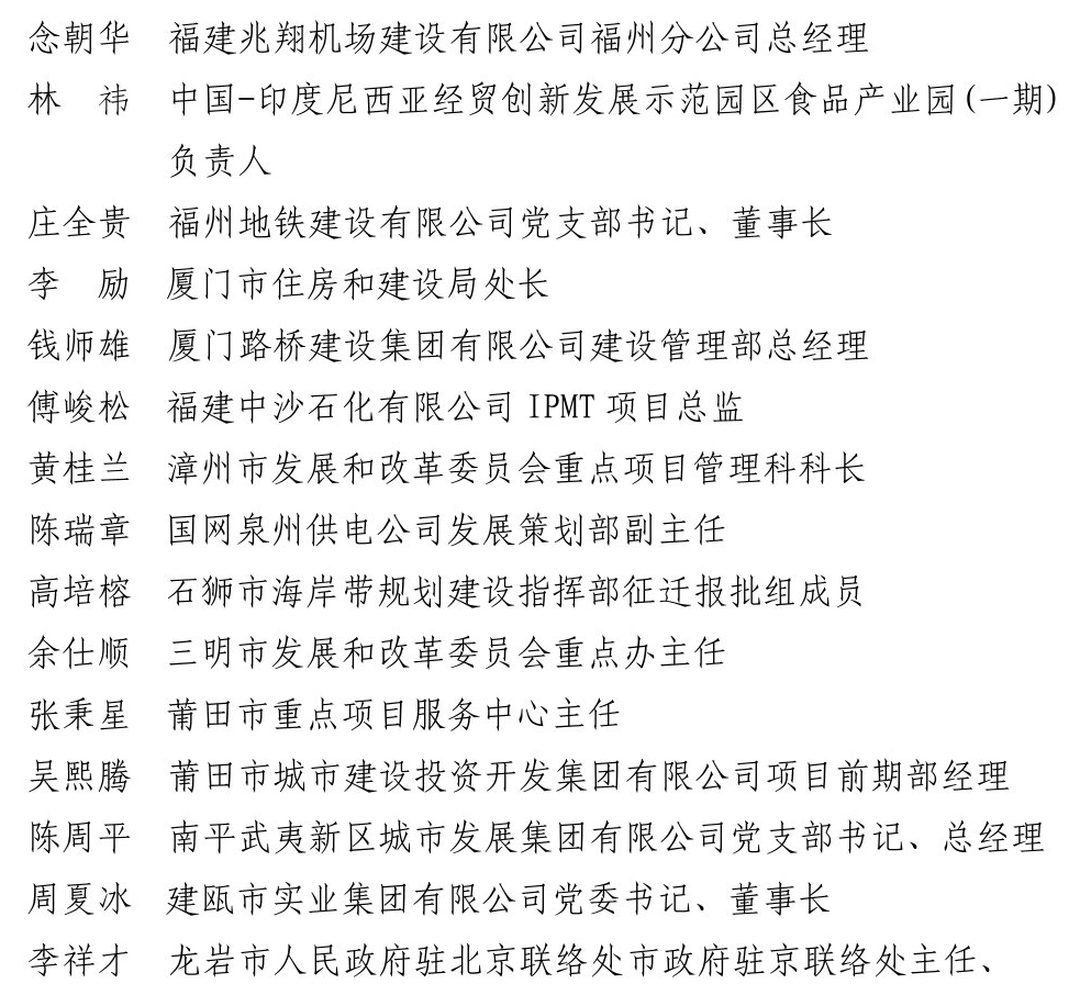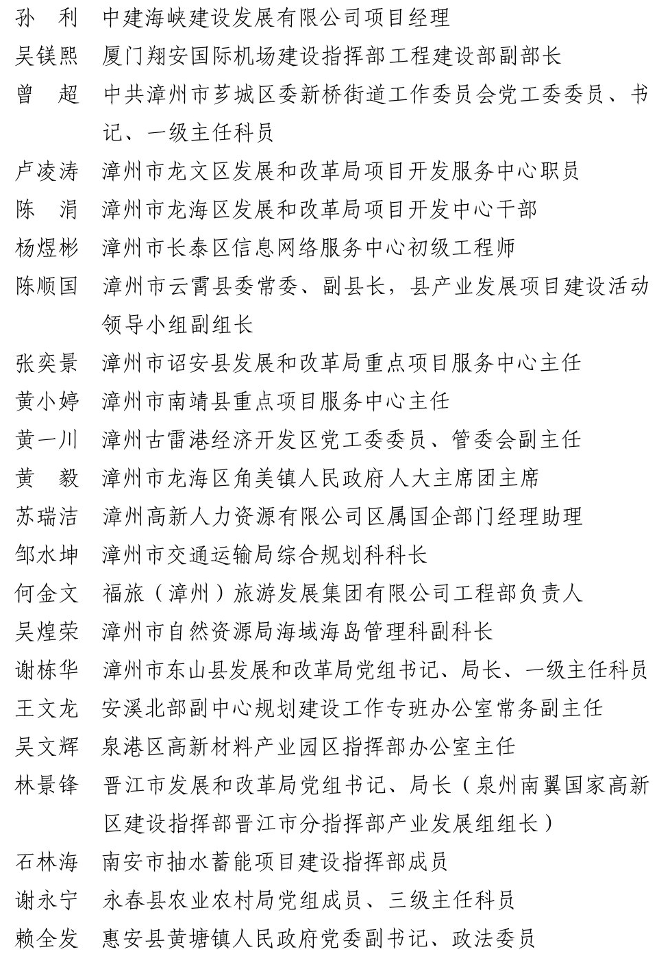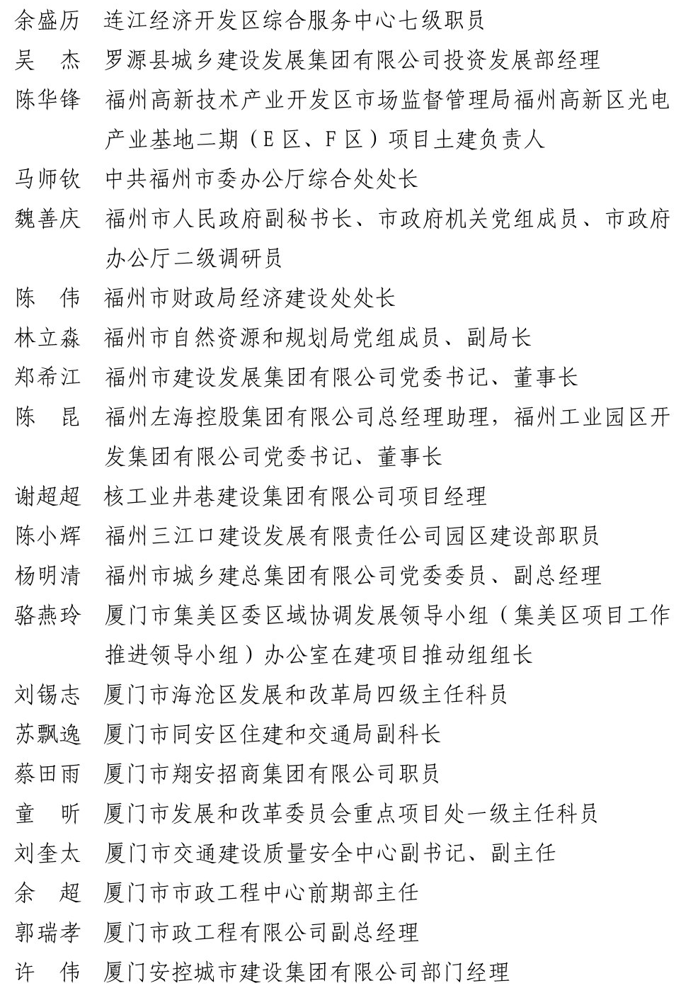 拟推荐 2022-2024年福建省重点建设优胜项目、建设功臣和先进工作者名单(排名不分先后)