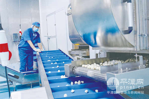 自动化的生产线上加工出一颗颗白色的鱼丸。