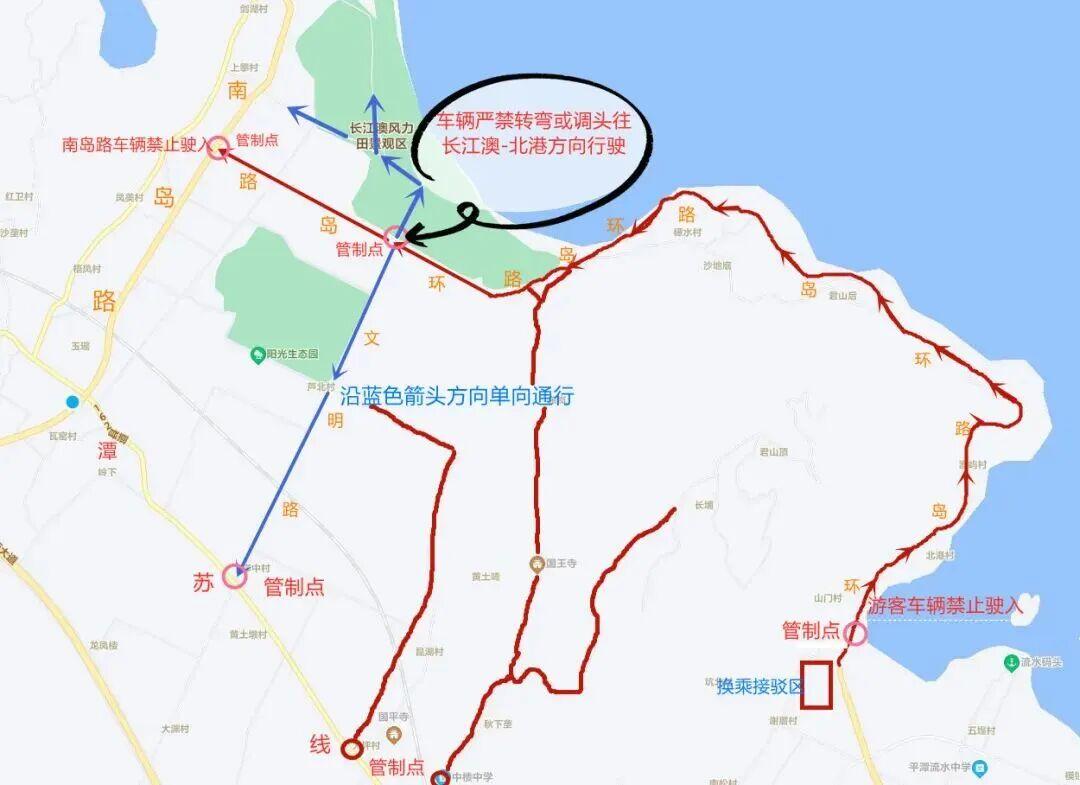 北港--长江澳沿线村居内车辆禁止转弯后由北向南往“山门前”方向通行,统一向北经文明路或南岛路行驶。