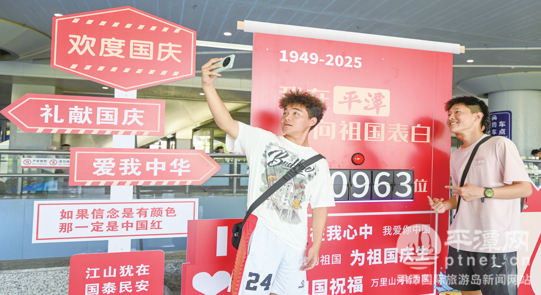 游客在主题打卡装置前打卡。融媒体记者 林君斌 摄