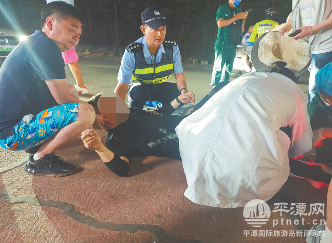 “警察同志,有人骑车摔了,腿被车和石墩夹着,好像骨折了。”10月3日晚,实验区公安局君山支队接到群众报警称,镜沙路段有游客意外受伤,情况紧急。