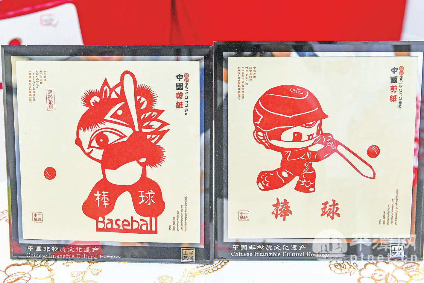 平潭剪纸区级非遗代表性传承人林美英创作的剪纸系列新作《剪纸——非遗剪韵》,将棒球赛场的动人瞬间定格于方寸红纸之间。更令人惊喜的是,她将平潭特有的文化符号——麒麟,融入创作中,让传统与现代、地域文化与体育精神在这薄薄的红纸上交相辉映。
