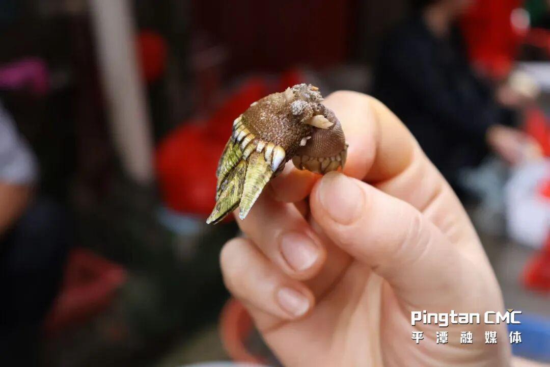 拿起一只石蟹,秋瑟接着介绍:“石蟹在平潭很常见,外壳坚硬,多在潮间带的礁石缝里活动。虽然名气不如梭子蟹、兰花蟹,但它自带一种独特的鲜味,是很多家庭日常餐桌上的常客。”只见她用手轻轻按压蟹脐两侧,解释道:“像这样捏一捏,如果感觉手感硬实,就说明蟹肉饱满。”