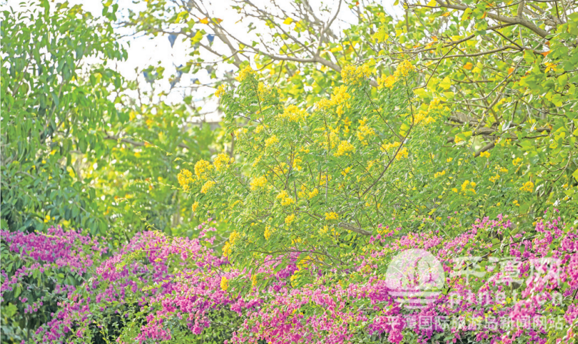 当盛村的秋收为秋色图添了动人一笔。村道旁,村民晾晒着花生和地瓜干,空气中满是清香。金井大道两侧,三角梅盛放,火红花朵随风摇曳,与蓝天形成鲜明色彩对比。