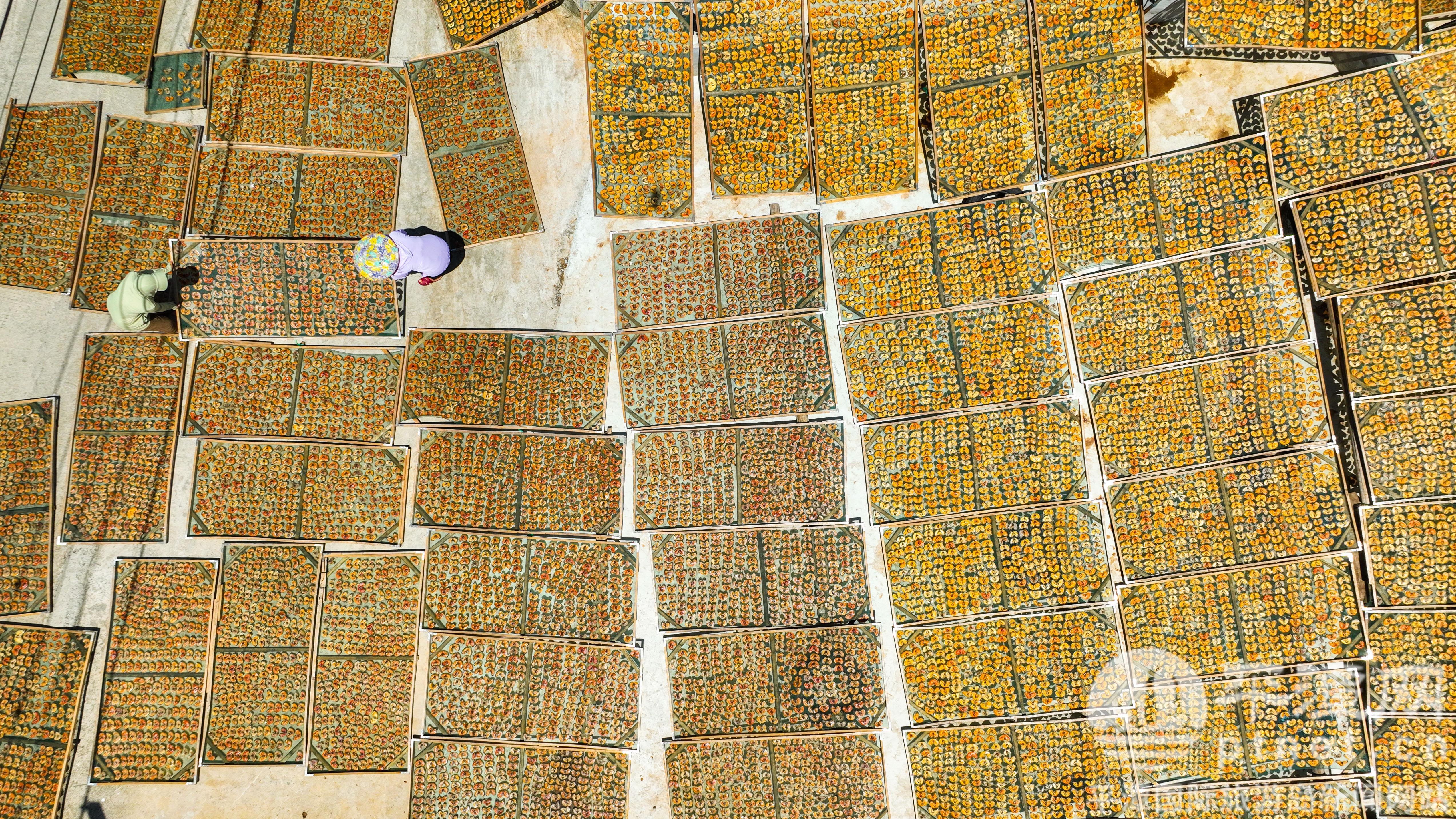 在苏平片区白沙村,村民晾晒蝴蝶干。