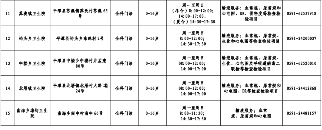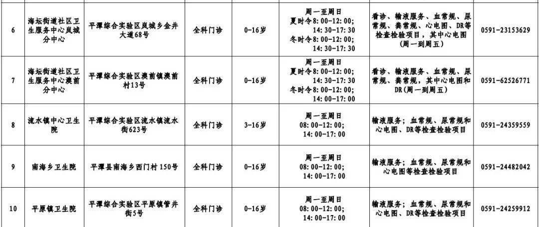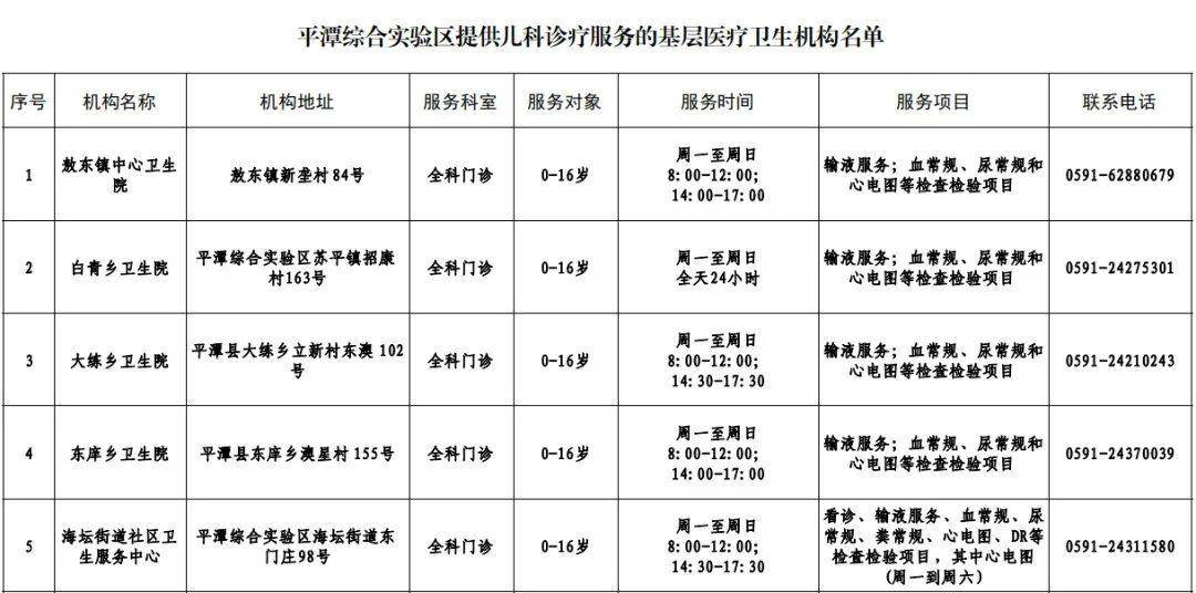 建议收藏!平潭“提供儿科诊疗服务的基层医疗卫生机构”最新名单出炉